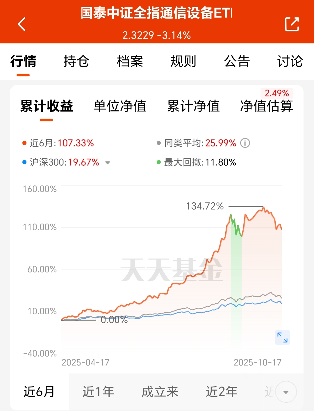 总的来说,在AI带来的算力革命和持续的政策加持下,通信设备行业的景气度有望持续。这个基金聚焦核心高成长赛道,近6个月收益率涨107.33%,相对同类平均的涨24.81%有着不错的超额收益,趁着短期跌出高性价比,今天我加仓。