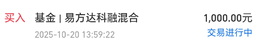 今天我买入$易方达科融混合(OTCFUND|006533)$1000块钱。