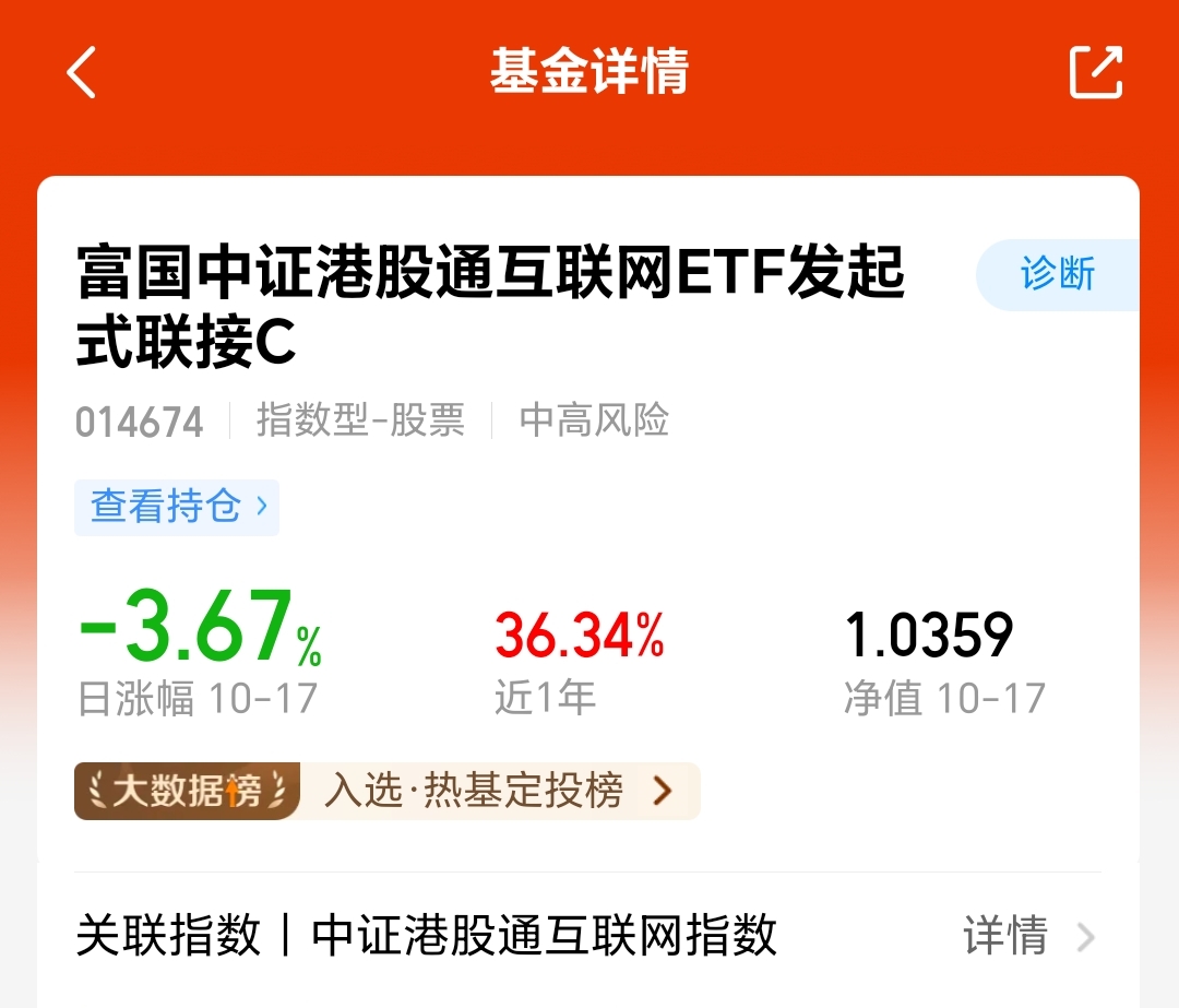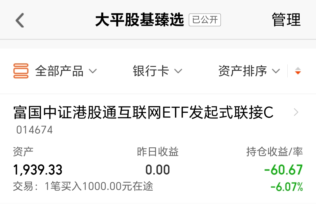 今天我买入$富国中证港股通互联网ETF发起式联接C(OTCFUND|014674)$1000块钱。