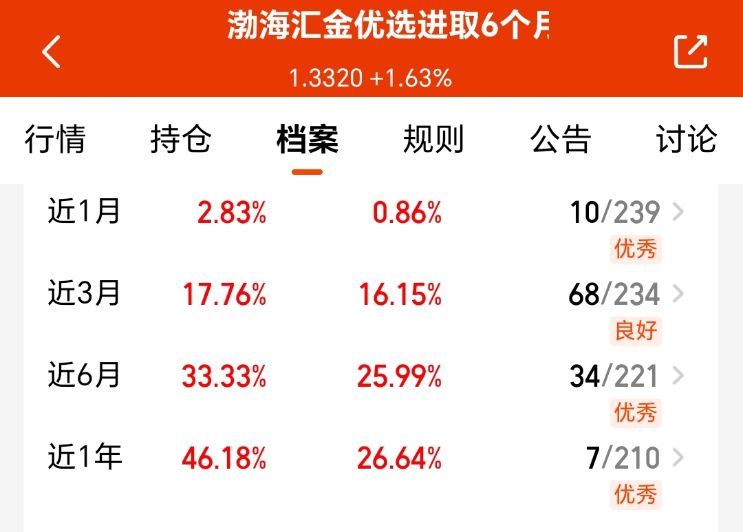 2025年上半年,FOF产品整体平均收益为3.11%,部分进取型FOF通过配置主题型ETF、海外资产及商品型工具实现了超过10%的涨幅。这个基金近3个月涨17.76%,近6个月涨33.33%,近1年涨46.18%,还是非常优秀的。