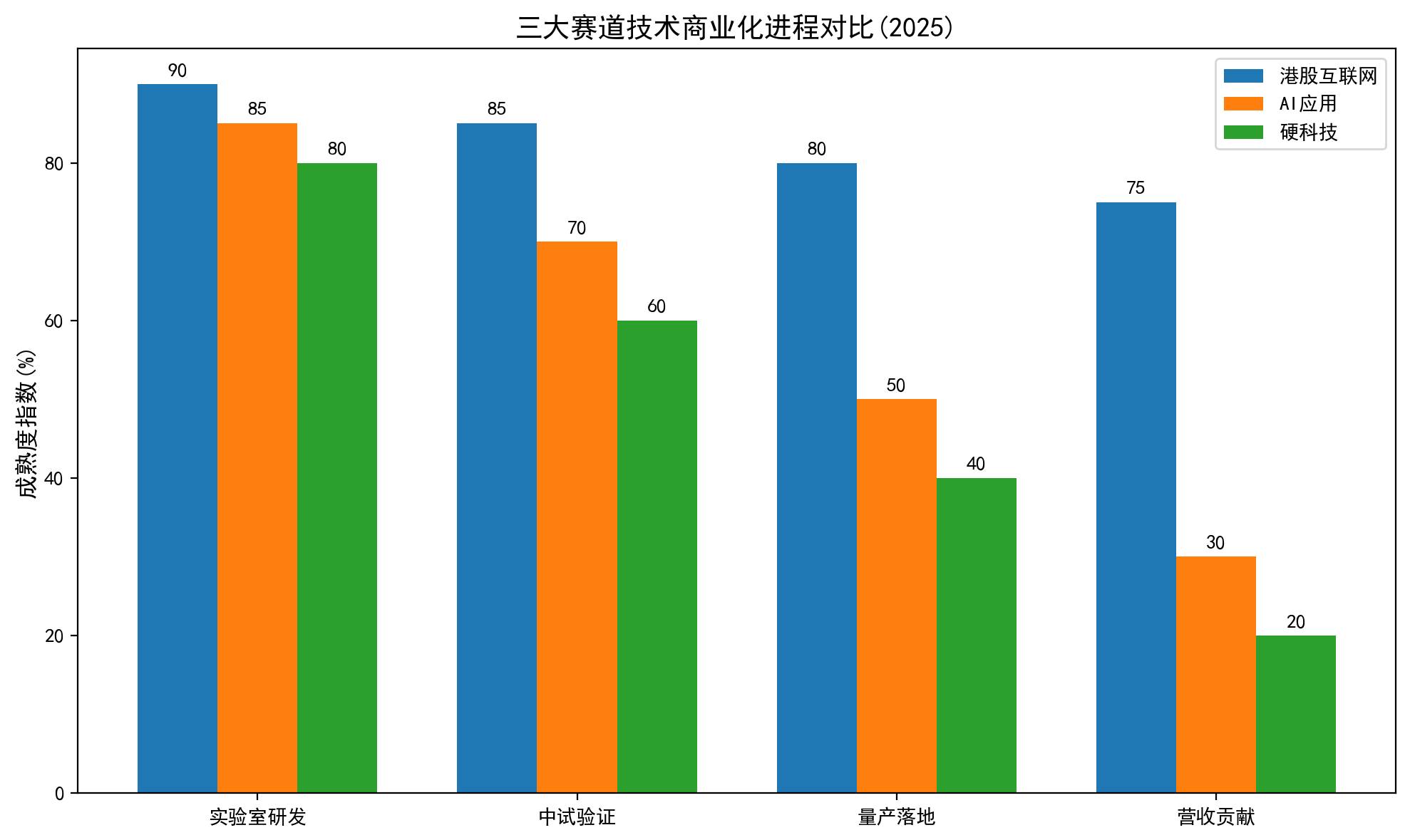 AI商业化能力成为区分企业竞争力的关键指标。阿里巴巴2025年二季度财报显示,其AI相关产品收入连续八个季度保持三位数增长,云业务中AI收入占比超20%;百度AI新业务收入同比增长34%,自动驾驶技术萝卜快跑稳居国内第一梯队;腾讯通过AI赋能广告与游戏业务,营销服务收入增长20%。相比之下,AI应用赛道仍受限于技术整合度不足(如AI手机功能碎片化)与商业化闭环缺失(如自动驾驶安全认证滞后),而硬科技赛道因半导体制造良率问题导致利润下滑,港股互联网在技术变现效率上显著占优。