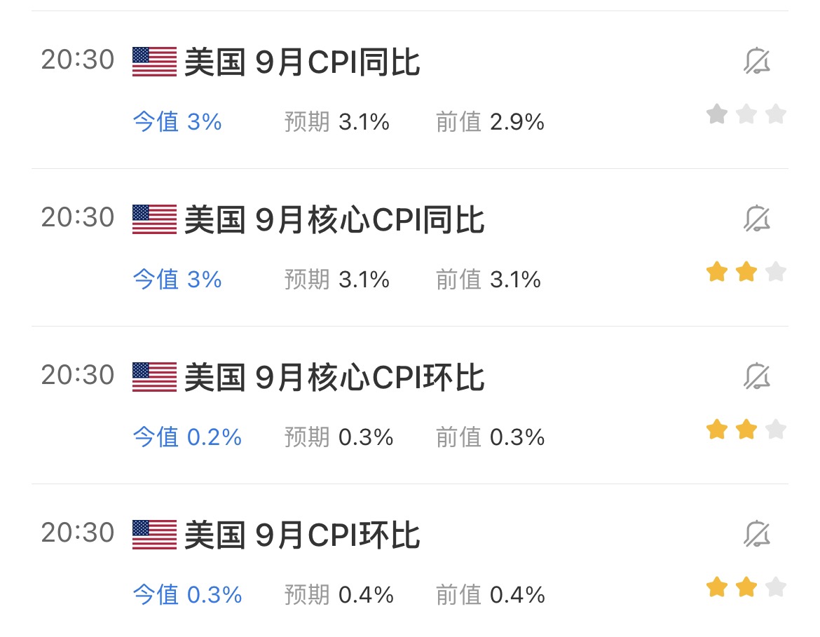 #10月你看好哪些投资赛道?# 昨夜,市场翘首以盼的美国9月CPI数据终于揭晓,结果没有让人失望——美国通胀继续降温!整体CPI月率上涨0.3%,年率3.0%,虽然比8月的2.9%略有回升,但低于市场预期的3.1%。更关键的是核心CPI,月率仅上涨0.2%,明显低于预期的0.3%,年率同样录得3.0%,相比8月的3.1%有所回落。这份低于预期的通胀数据,无疑给美联储打开了更大的政策空间。看看市场反应就知道了:根据CME FedWatch工具显示,市场几乎铁定认为美联储会在本月再度降息25个基点,概率高达99%,甚至12月再次降息的概率也飙升至96%以上。