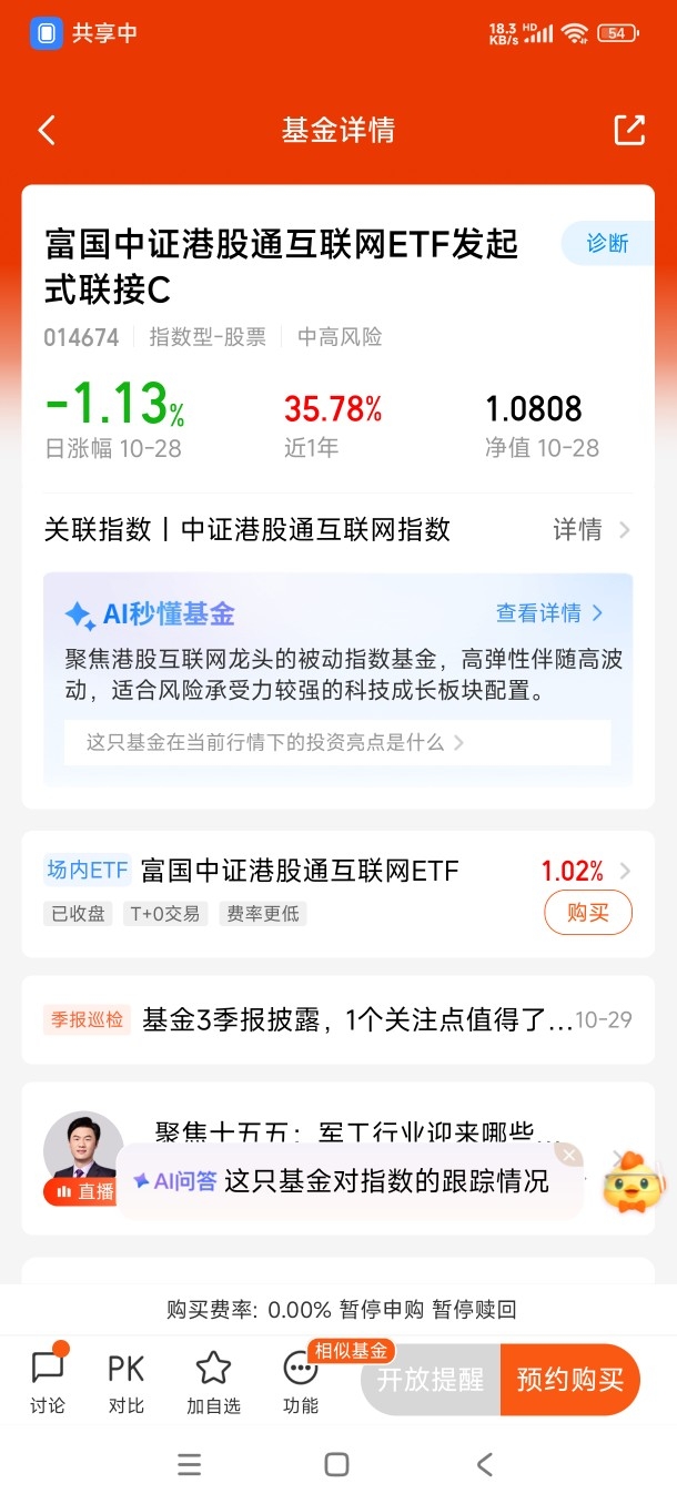 最近港股互联网回暖明显,我持有的富国中证港股通互联网ETF联接C近1年涨了36%