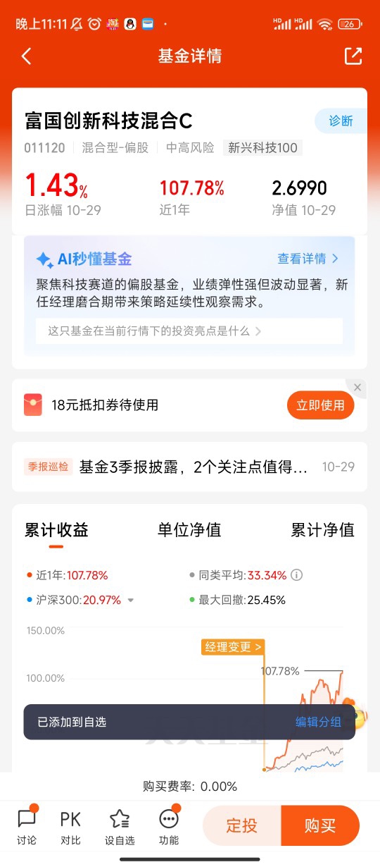 作为C类联接基金,它具有显著的费用优势。管理费0.5%/年,持有7天免赎回费,对于定投的投资者来说非常友好。虽然C类销售服务费0.3%/年,长期持有成本略高于A类,但对于中短期投资者而言,能够有效降低投资成本,提高投资效率。