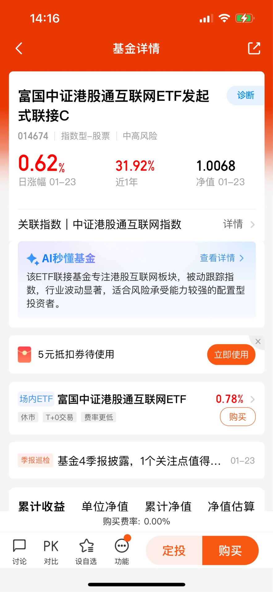 在众多港股科技相关的基金中,我个人最看好的是富国中证港股通互联网ETF发起式联接C(014674),核心原因有七个,都是我的真情实感,下面我就来说一说: