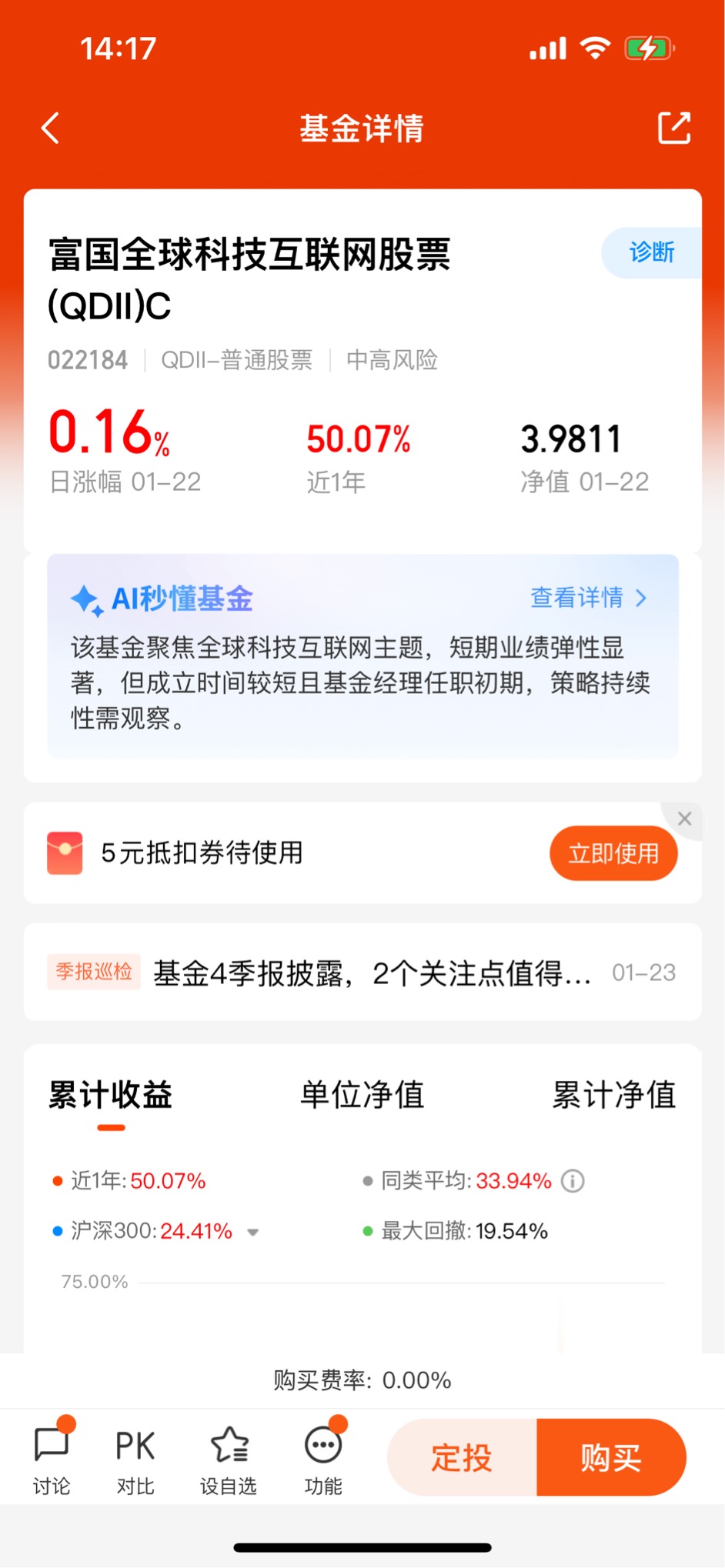 这只基金是通过港股通渠道投资港股,普通投资者只需要开通港股通权限(50万资产门槛)就可以申购。相比直接开通港股账户,港股通的交易成本更低,也更方便。另外,基金的申购起点仅为10元,定投起点也为10元,非常适合小额分散投资。大家可以从每月定投1000元开始,一年下来也积累了不少份额。对于没有港股通权限的投资者来说,这只基金是间接投资港股科技的最佳选择之一。