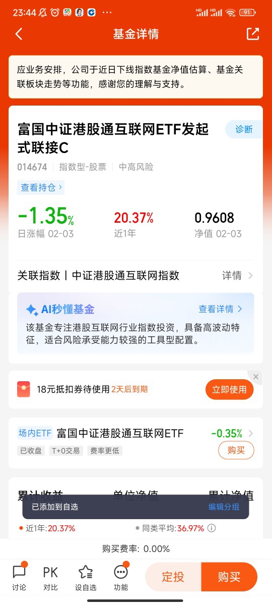 最近不少朋友都在问,港股这波震荡到底啥时候是个头?尤其是港股科技板块,一会儿涨一会儿跌,拿着心里真不踏实。作为持有富国中证港股通互联网ETF发起式联接C挺久的老基民,今天就用大白话跟大家聊聊我的看法——2026年的港股,尤其是带着AI属性的科技板块,已经站在了风口上,之前的“等风来”,其实风已经悄悄吹起来了。