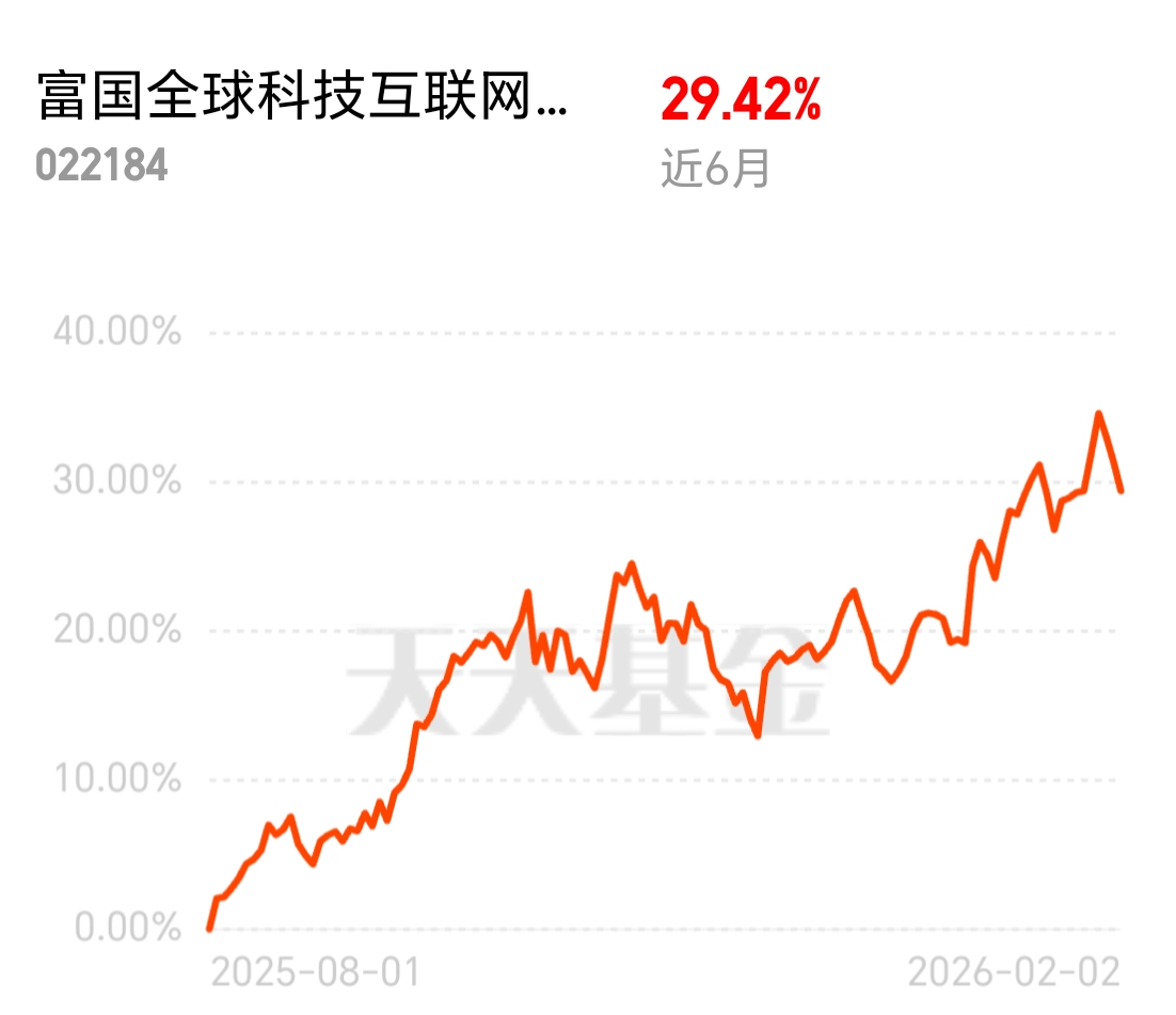 过去半年赚了29%,一个月也有9%富国全球科技互联网C的业绩确实亮眼。更让我安心