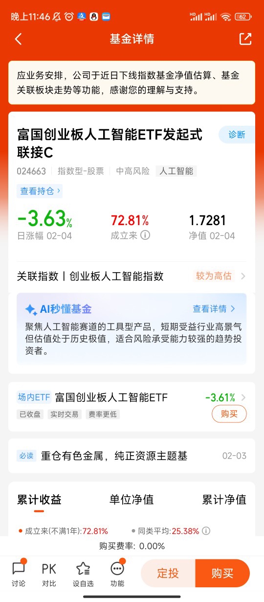 作为ETF联接基金,它跟踪误差小、持仓透明、风格稳定,不会出现基金经理随意调仓、风格漂移的问题,买得放心。C类份额没有申购费,持有一段时间后赎回费也很低,适合定投、分批布局,也适合做波段操作,灵活度很高。富国基金在港股和指数投资领域经验丰富,管理能力靠谱,能保证基金紧密跟踪指数,不拖后腿、不添乱,把指数的收益实实在在给到持有人。