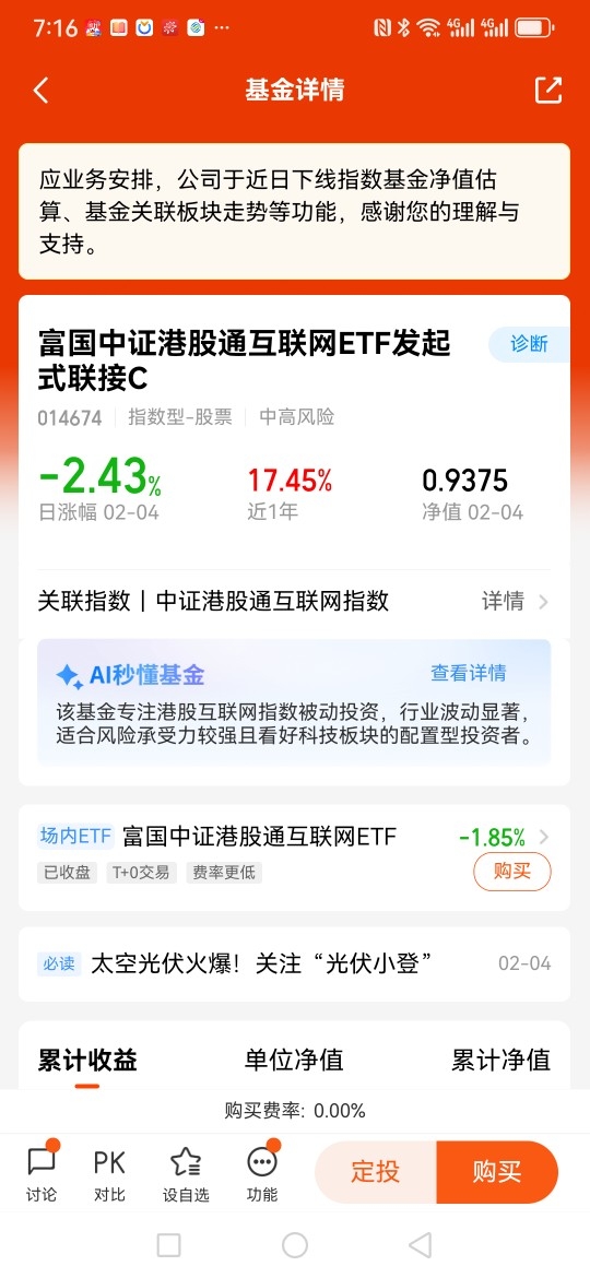 综上所述,还是期待恒生科技,早回AI赋能的叙事。可以关注$富国中证港股通互联网ETF发起式联接C$ 。