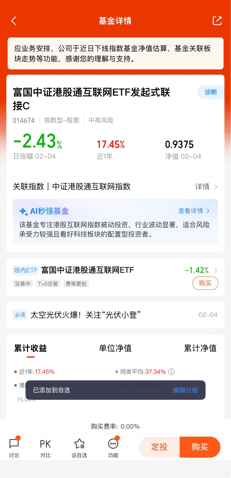 从资产配置视角看,2026年港股科技板块的结构性机会具备稀缺性与高确定性。在全球资产重新定价的背景下,低估值、高成长的港股互联网龙头企业,将成为资金避险与增值的核心选择。富国中证港股通互联网ETF联接C凭借精准的指数覆盖与便捷的投资体验,为普通投资者搭建了通往港股科技核心资产的桥梁,无论是作为核心配置还是卫星配置,都有望在2026年的市场行情中贡献可观收益。