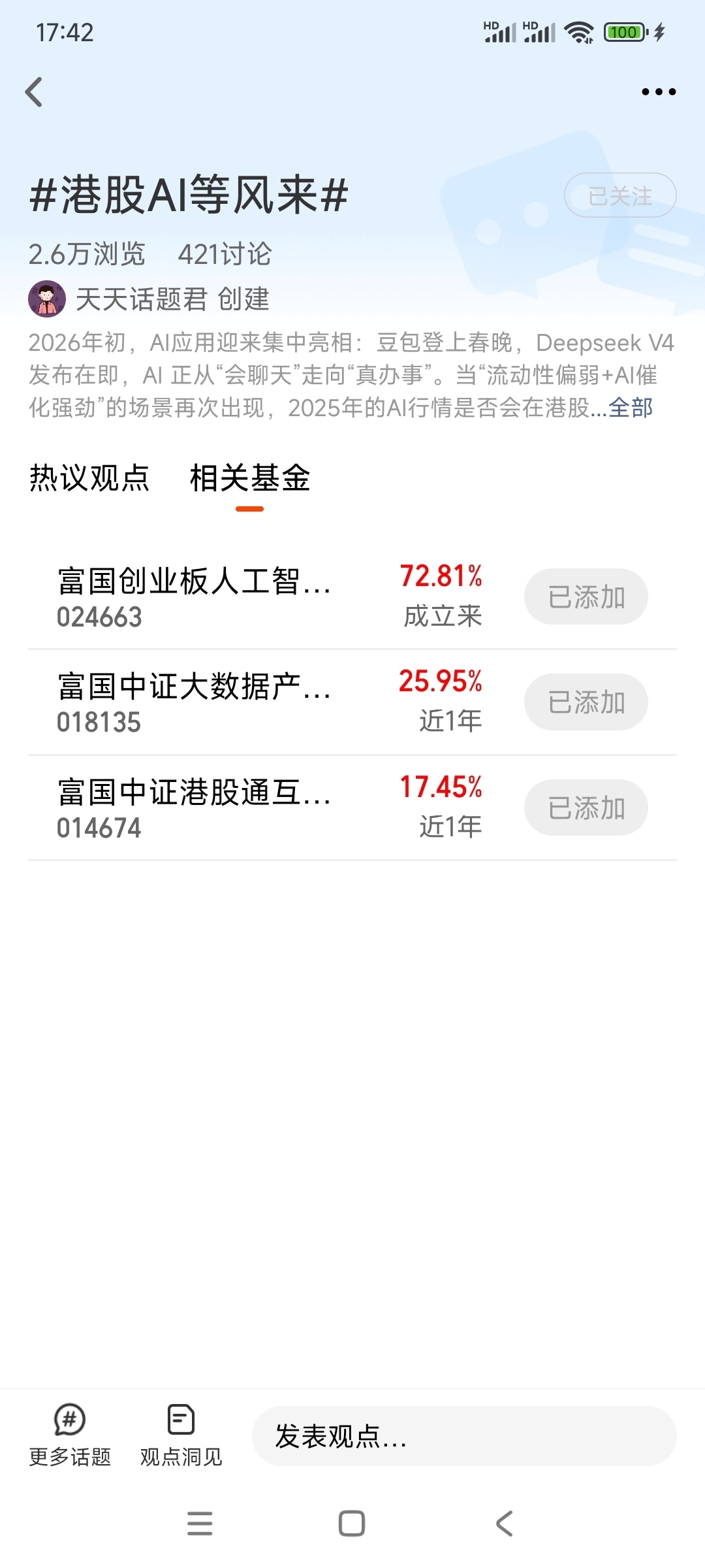 2026年的港股,整体是震荡上行、业绩为王;而港股科技是弹性最大、主线最明确的板块,在低估值、产业爆发、盈利改善三重共振下,机会明显多于风险。只要耐心持有、不被短期波动洗出去,大概率能拿到不错的回报。@富国基金管理有限公司