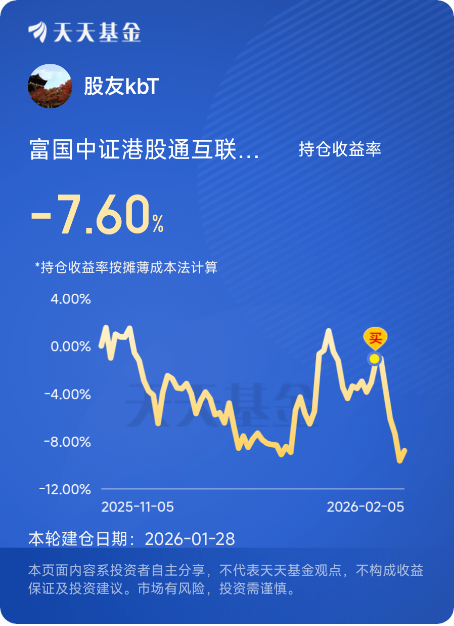 从长期来看,国内平台经济政策持续回暖,互联网、AI、云计算等赛道业绩逐步兑现,龙头企业盈利韧性不断增强,基本面支撑越来越扎实;同时南向资金持续净流入,长期资金正在逆势布局,短期外资流出带来的调整,反而会创造更好的中长期布局点位。@富国基金管理有限公司 #晒收益#