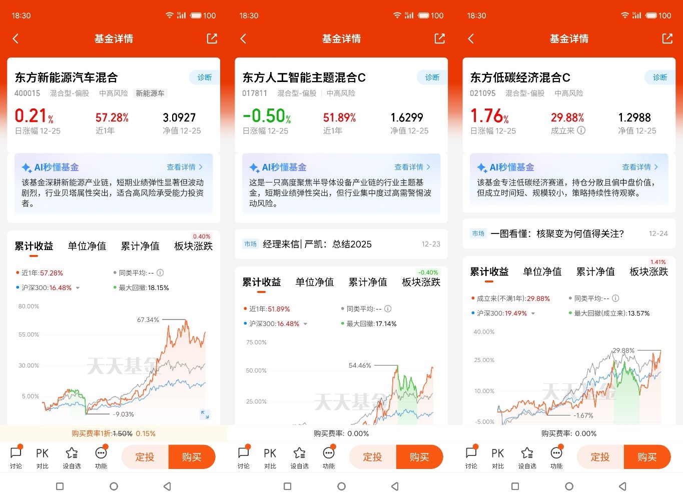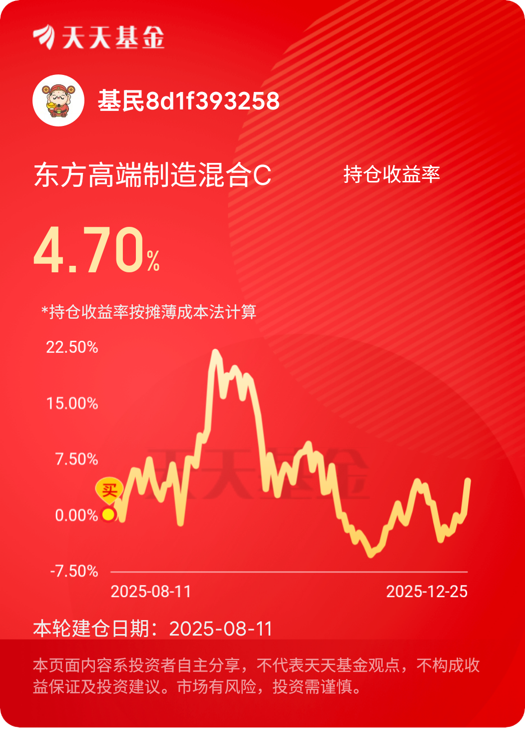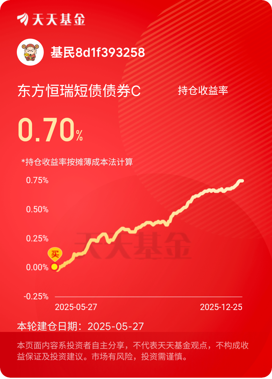 这两只基金的投资价值,是我用真金白银验证出来的。持有东方恒瑞短债债券C以来,最直观的感受就是“省心”——不用盯盘,不用猜利率走势,基金经理通过久期调整、信用债精选等策略把控风险,日常赎回也很灵活,既满足了我对流动性的需求,又能稳稳拿到超越货币基金的收益,作为“压舱石”再合适不过 。而东方高端制造混合C让我看到了长期投资的力量,虽然短期会有涨跌起伏,但高端制造作为国家重点支持的领域,长期逻辑清晰,基金通过精选优质企业,让我能分享产业发展的红利。这大半年下来,我的组合不仅没让过心,整体收益还跑赢了不少盲目追热点的朋友,这种“睡得香、收益稳”的体验,比什么都重要。