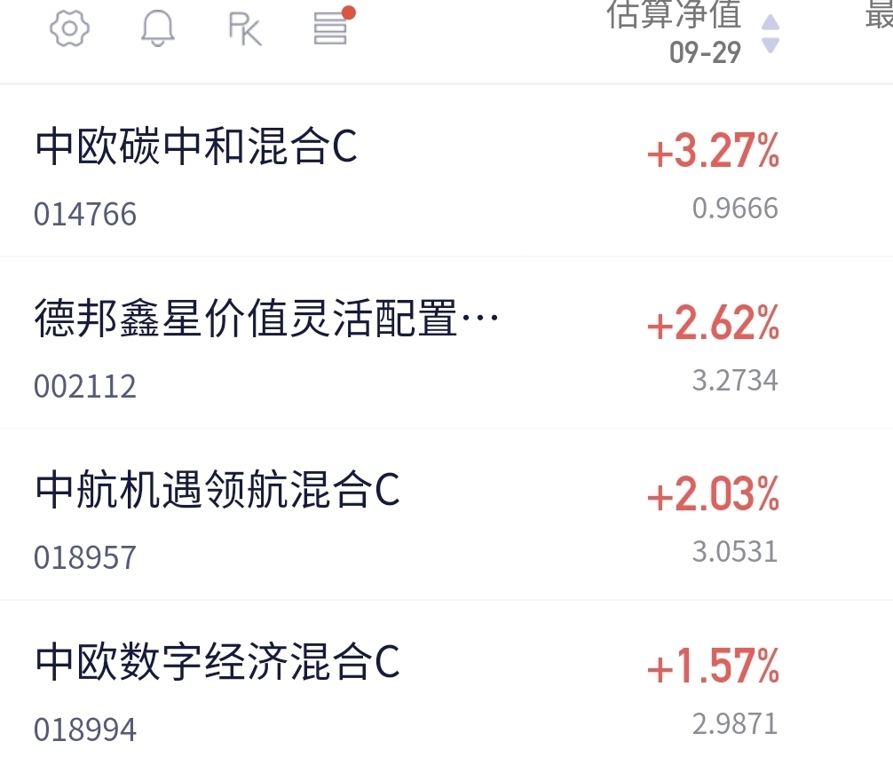下午指数集体发力了。看来目前市场的趋势还是向上。今天的新能源表现确实不错。今天我发现$中欧碳中和混合发起C$ 这只基金表现一直不错呀。今天估值涨幅3.27%。持仓整体比较全面。长期表现也做到了涨多跌少。期待继续创新。