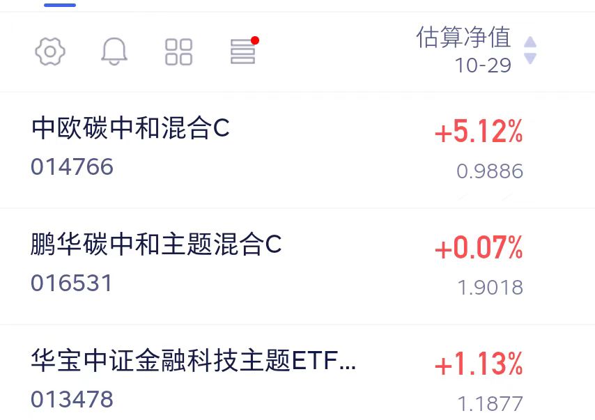 $中欧碳中和混合发起C(OTCFUND|014766)$估值上涨5.12%$鹏华碳中和主题混合C(OTCFUND|016531)$估值上涨0.07%