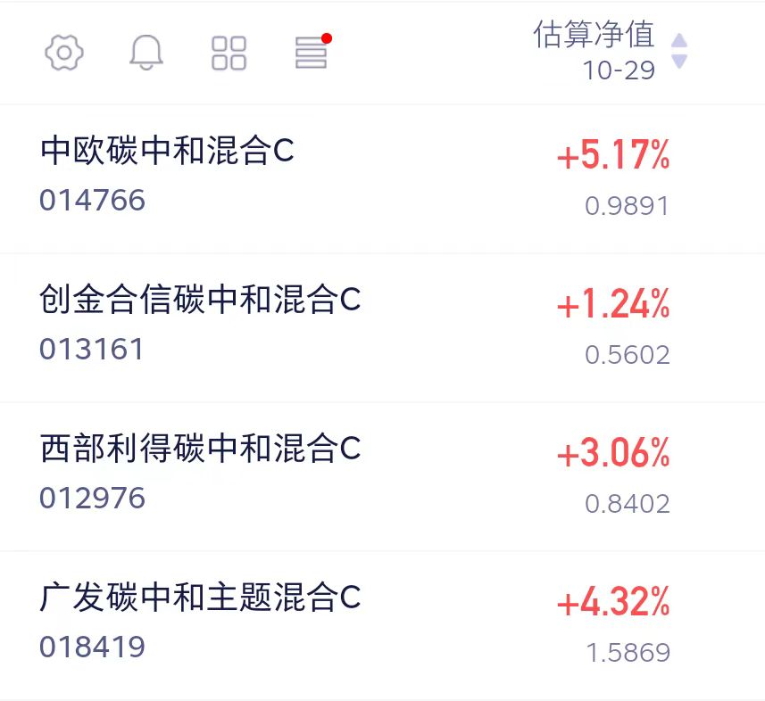 $中欧碳中和混合发起C(OTCFUND|014766)$估值上涨5.17%$创金合信碳中和混合C(OTCFUND|013161)$估值上涨1.24%
