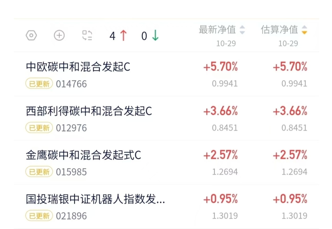 中欧碳中和混合发起C今天涨了5.7%,光伏行业好像供需关系在好转。西部利得碳中和混合发起C也有3.66%的涨幅,金鹰碳中和混合发起式C涨了2.57%。感觉新能源板块调整了这么久,现在可能是个不错的布局时机。