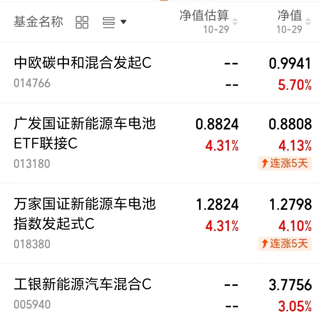 $广发国证新能源车电池ETF联接C(OTCFUND|013180)$今天上涨4.13%;