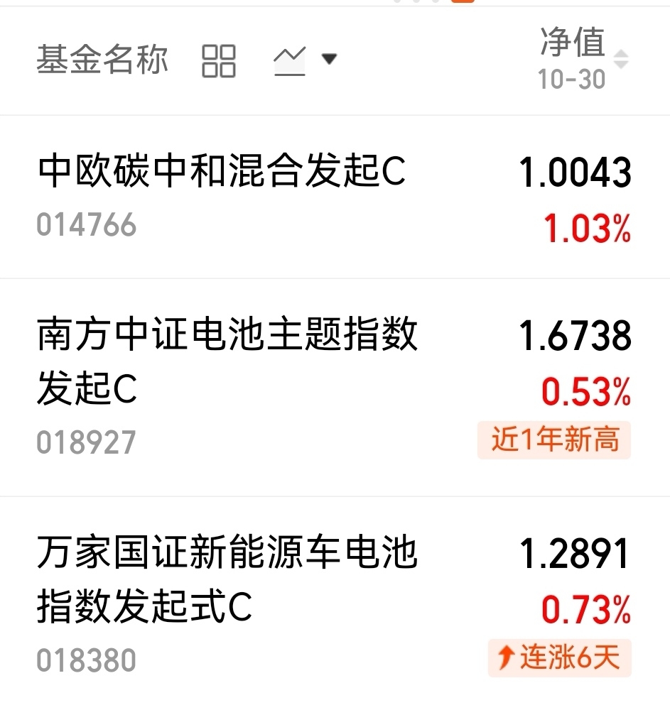 $万家国证新能源车电池指数发起式C$ 今天涨0.73%,不错。