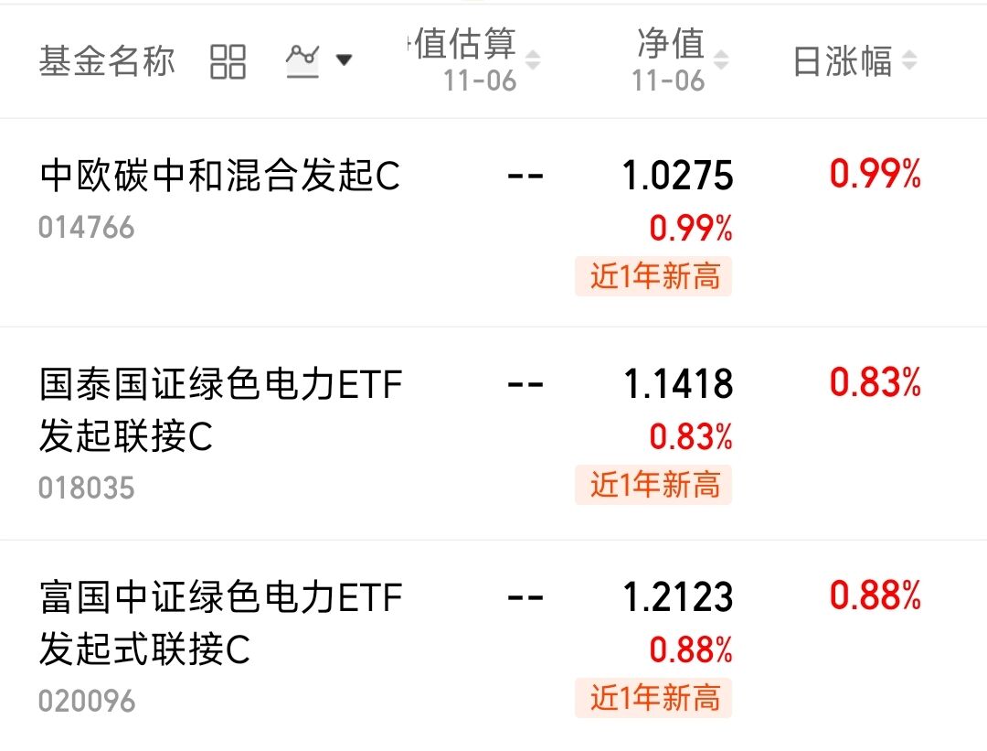 今天群里讨论了碳中和基金,这个我没有注意,以为$中欧碳中和混合发起C(OTCFUND|014766)$上涨0.99%,力度也不怎么样,但拉长最近三周的时间,它没有出现回撤,所以说引起了大家的讨论,$国泰国证绿色电力ETF发起联接C(OTCFUND|018035)$上涨0.83%,$富国中证绿色电力ETF发起式联接C(OTCFUND|020096)$上涨0.88%。