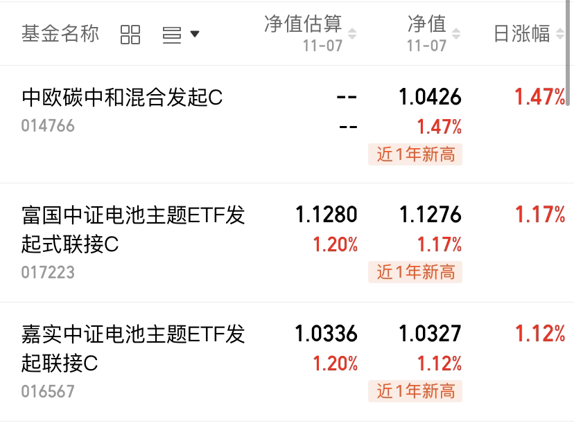 说实话,我今天的心态有点崩了,持有的芯片基金昨日大涨之后想要的转换。考虑到电池板块和消费电子,最后选择了消费电子,而今天的电池板块逆势上涨,$中欧碳中和混合发起C(OTCFUND|014766)$上涨1.47%,$富国中证电池主题ETF发起式联接C(OTCFUND|017223)$上涨1.17%,$嘉实中证电池主题ETF发起联接C(OTCFUND|016567)$上涨1.12%。