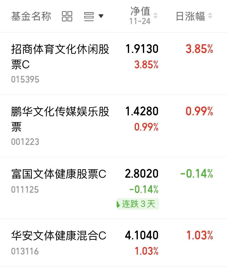 今天A股涨幅给力呀,真正反弹啦,三大指数都是红的,基本所有板块都是上涨的,昨天行情收涨,文体娱乐方向近期出色,$招商体育文化休闲股票C(OTCFUND|015395)$昨日上涨3.85%,表现优秀呢!