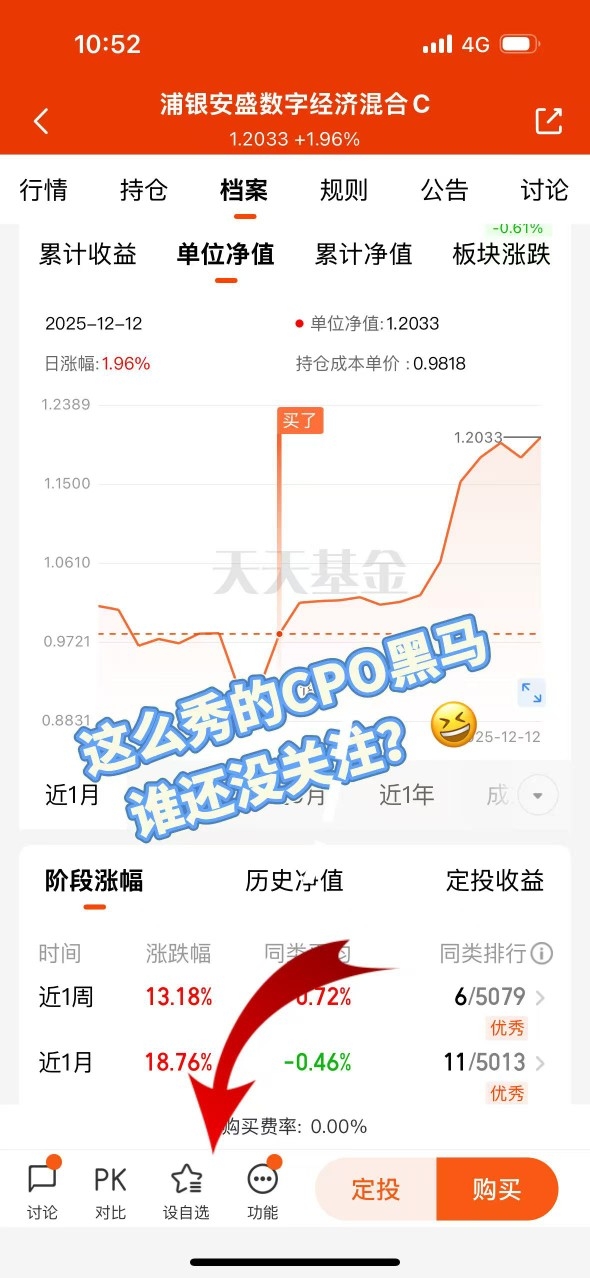 浦银安盛数字经济一周涨了13%,在车上的吃爽了,回调继续加仓起来,再跌我再抄,光通信爆发还是得看CPO$浦银安盛数字经济混合C$
