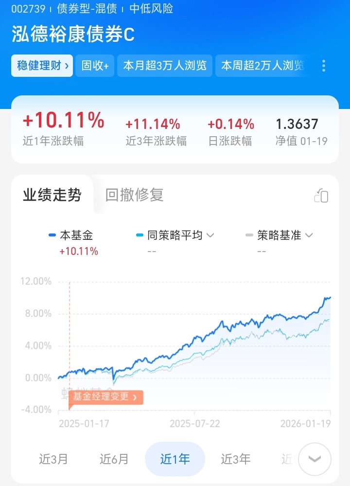 4100点市场明显进入震荡区间,裕康配置均衡,既有红利也有科技,两手抓更有胜率,过往业绩看,已经连续16个月正收益了,并且2025年保持月月正收益,尤其是11月仍艰辛保持正收益。是市场稀有能稳定增强的绩优固收+,可以放心买入,也是全市场唯一只近一年保持12个月连涨记录的二级债基。