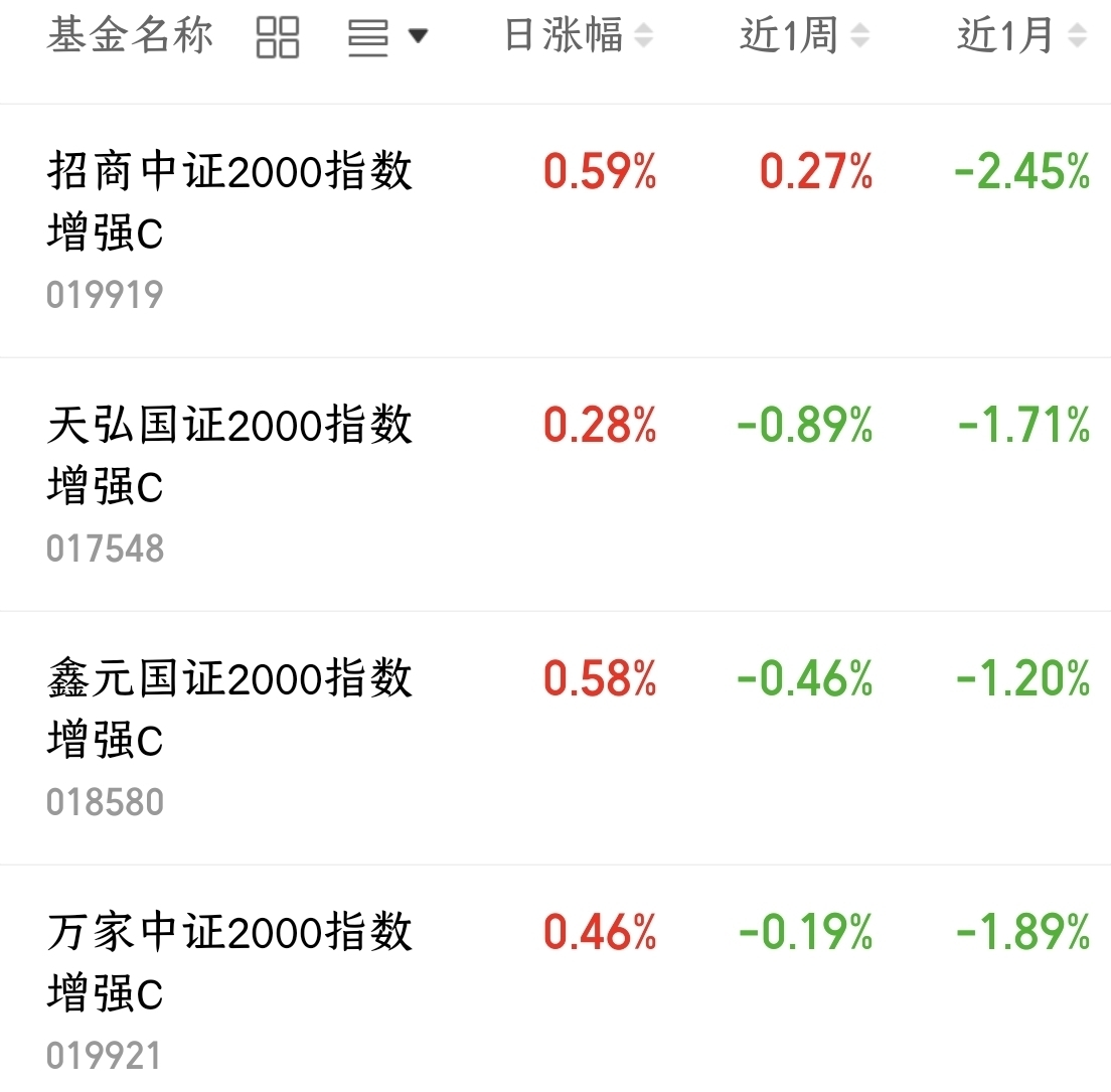 $招商中证2000指数增强C$ 近一周涨幅0.27%