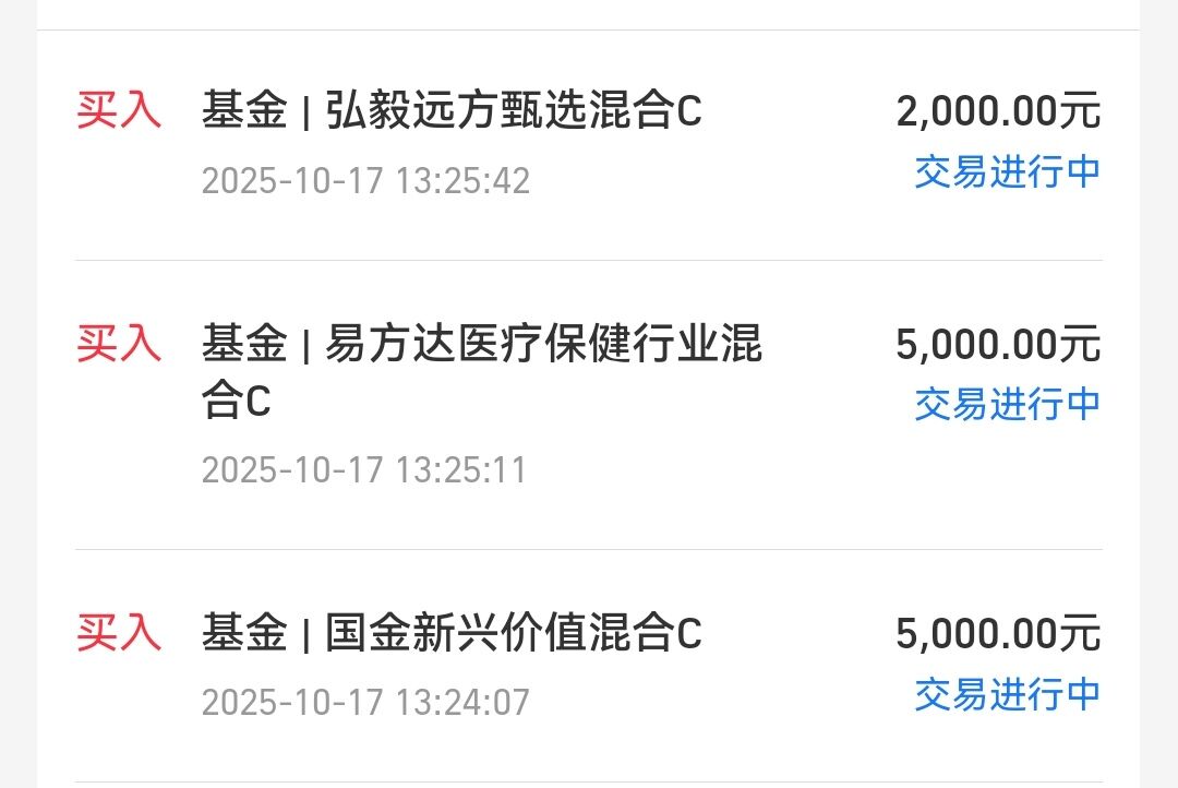 我今天加仓了机器人主动管理基金、创新药、渤海汇金优选进取6个月、国金新兴价值,其它基金继续持有不动。