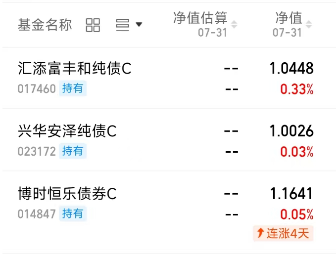 果然今天有惊喜!持有的$汇添富丰和纯债C(OTCFUND|017460)$大爆蛋,收33个大鸵鸟蛋,涨幅领先!昨天爆蛋74个蛋,不愧是30厘米大长腿的债基!
