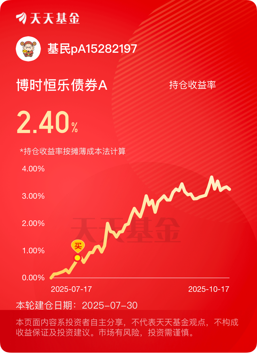 债市调整了好几个月,感觉现在稳住了,这基80%都是债券,性价比凸显