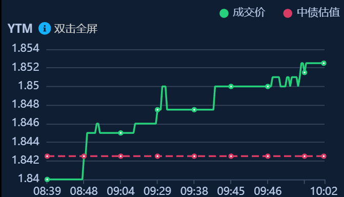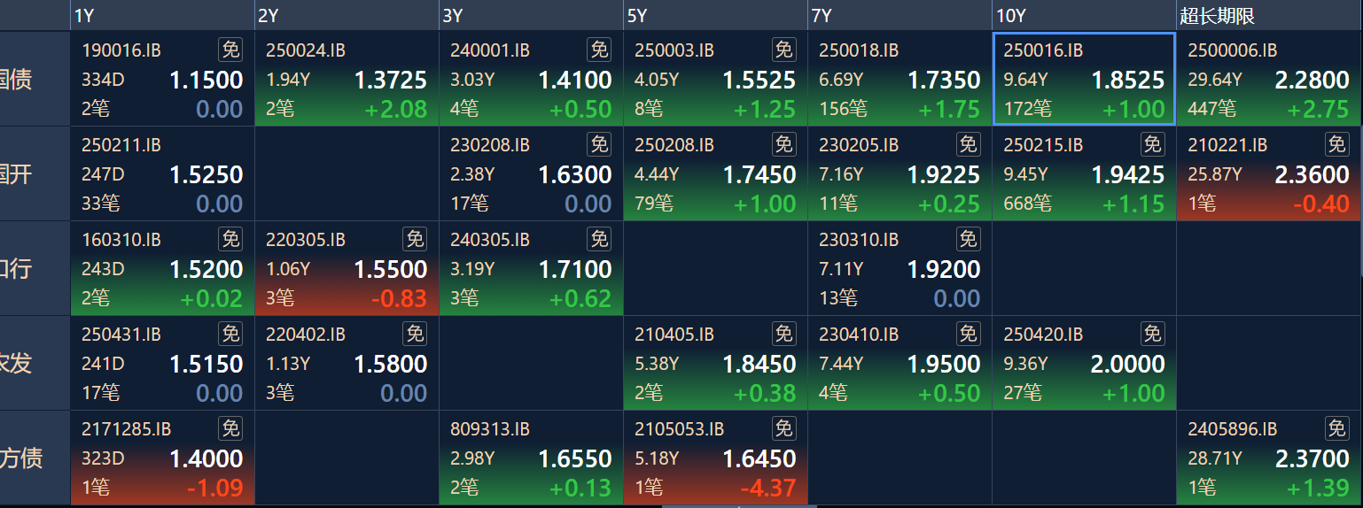 二、十年期国债收益率:1.8525 0.01%(国债收益率越涨,债市越跌,两者反向关系)