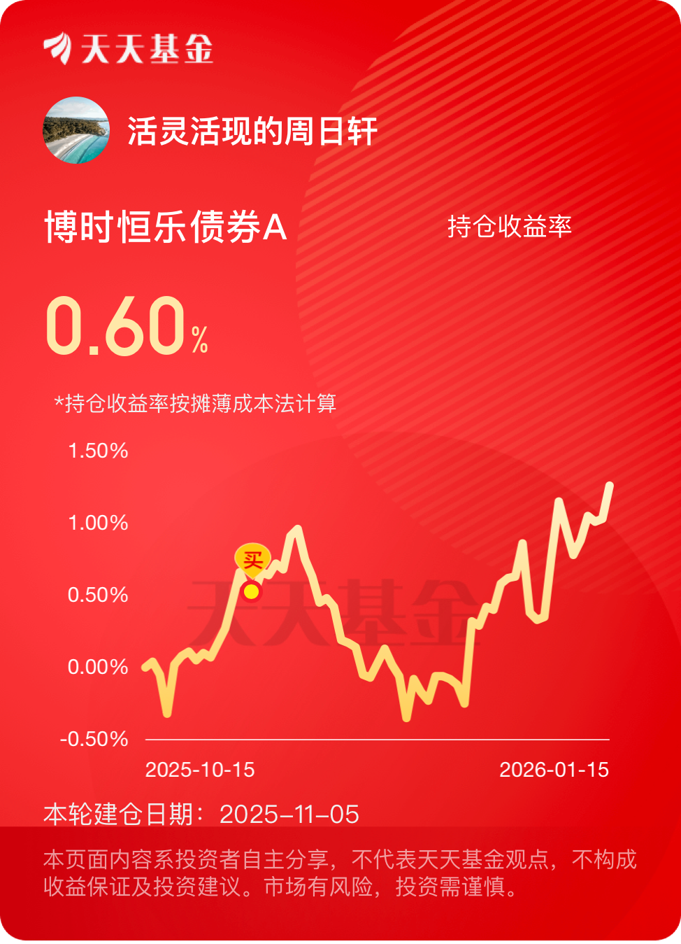 开年这波债市回暖挺明显的,利率下行,收益稳稳的。权益部分节奏踩得准,一天22个蛋
