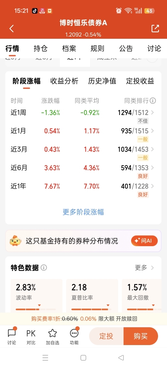 策略不花哨,就是稳健为主。大部分投安全的债券,少部分参与股市增强弹性,一年收益7.6%+。现在大盘在4000点上,配置时机不错