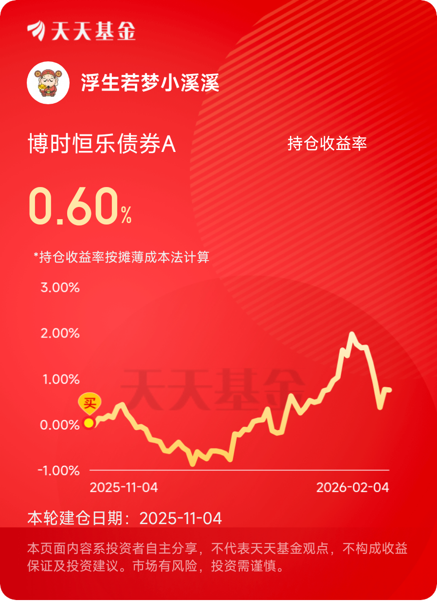 固收+产品今年被机构重点推荐。这基20%的股加上80%的债,进退有度,适合做底仓,长期拿收益更稳。#晒收益#