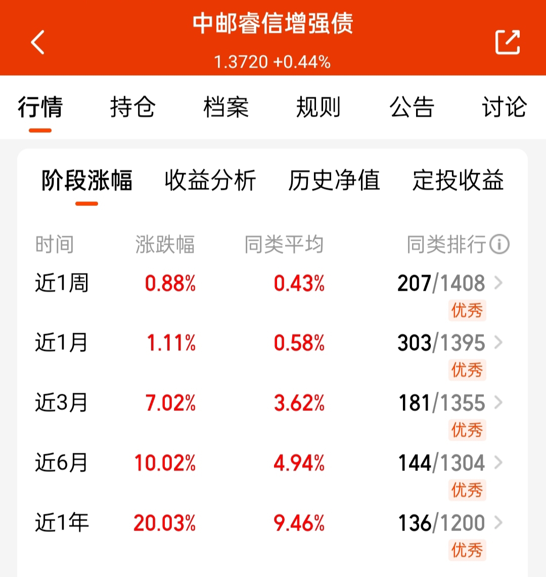 还是混债收蛋香多了,$中邮睿信增强债$主投信用债+可转债+股票的,抗跌能力强,昨