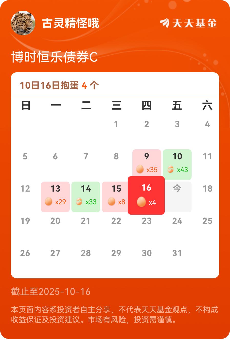 昨天收了四个蛋,满意!债市利好不断,央行还有动作预期,拿着继续等涨。#晒抱蛋收益#