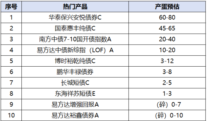 热门产品产蛋预估:(根据16:00行情预测,仅供参考,以实际产蛋为准)