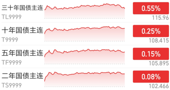 今天债市继续强势,国债期货高开高走,全线收涨,利率债和信用债也都是以上涨为主,整体暖意明显。