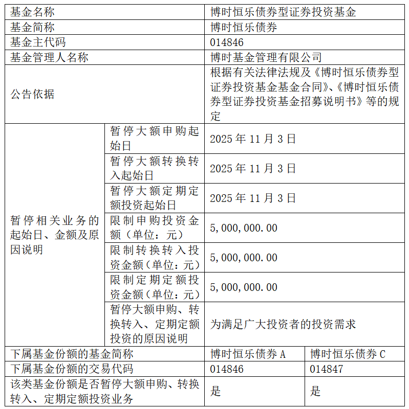 博时恒乐债券型证券投资基金调整大额申购、转换转入、定期定额投资业务的公告