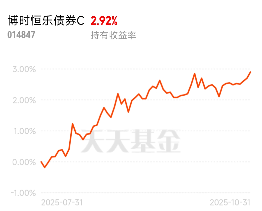 回撤控制得挺好,风险低的同时收益也不错,半年产蛋600多。上周还分红了,现在额度也放开了,拿着更安心了$博时恒乐债券C$