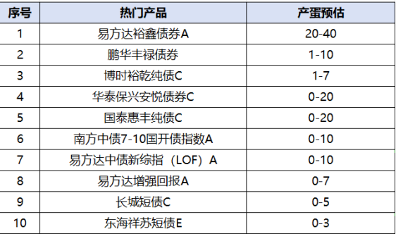 热门产品产蛋预估:(根据16:00行情预测,仅供参考,以实际产蛋为准)