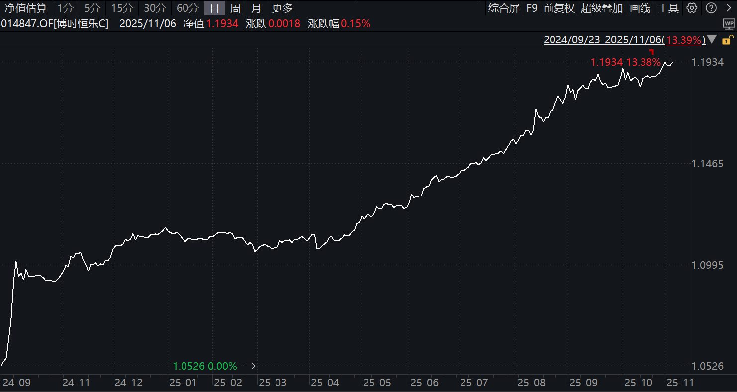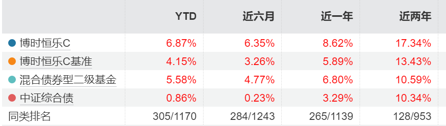 形成对比的是,固收+最近表现不错。比如,我持有博时恒乐C净值昨天再创历史新高,表现非常亮眼。