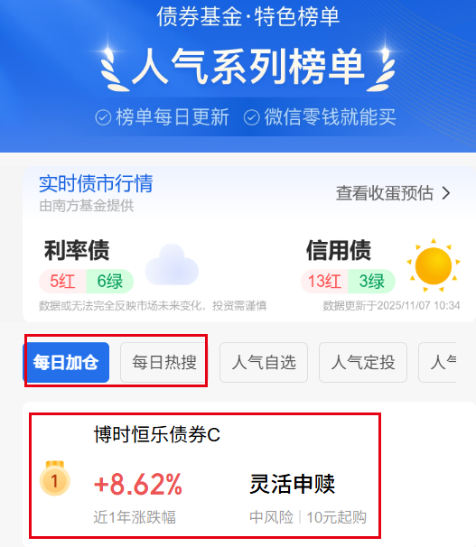 而且,该基长时间位于理财通债基类基金每日加仓榜第一(更是包揽了每日加仓、每日热搜、人气流量等榜单的榜首),是一只名副其实的宝藏网红固收+,堪称妥妥的“顶流”。