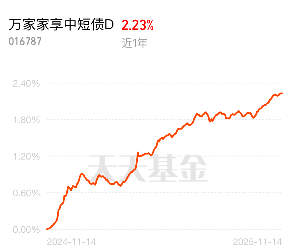 $万家家享中短债D$ 以短期债券为主,受利率波动影响较小,资产净值相对平稳,更加适合风险偏好较低的配置需求,靠谱
