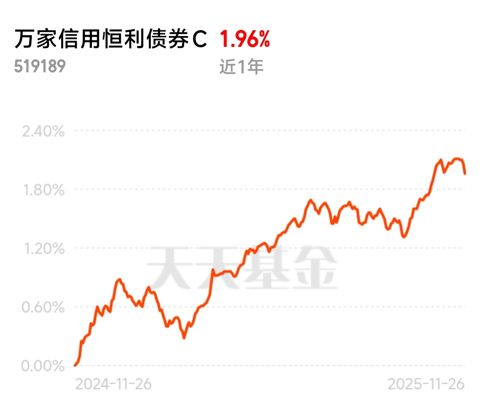投资债基风险较小,短期波动影响不大,继续加仓布局就好$万家信用恒利债券C$