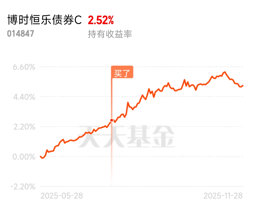 债市提供安全垫,股市提供弹性,当前市场对固收+挺友好。趁现在额度还有100万,布局好时候$博时恒乐债券C$
