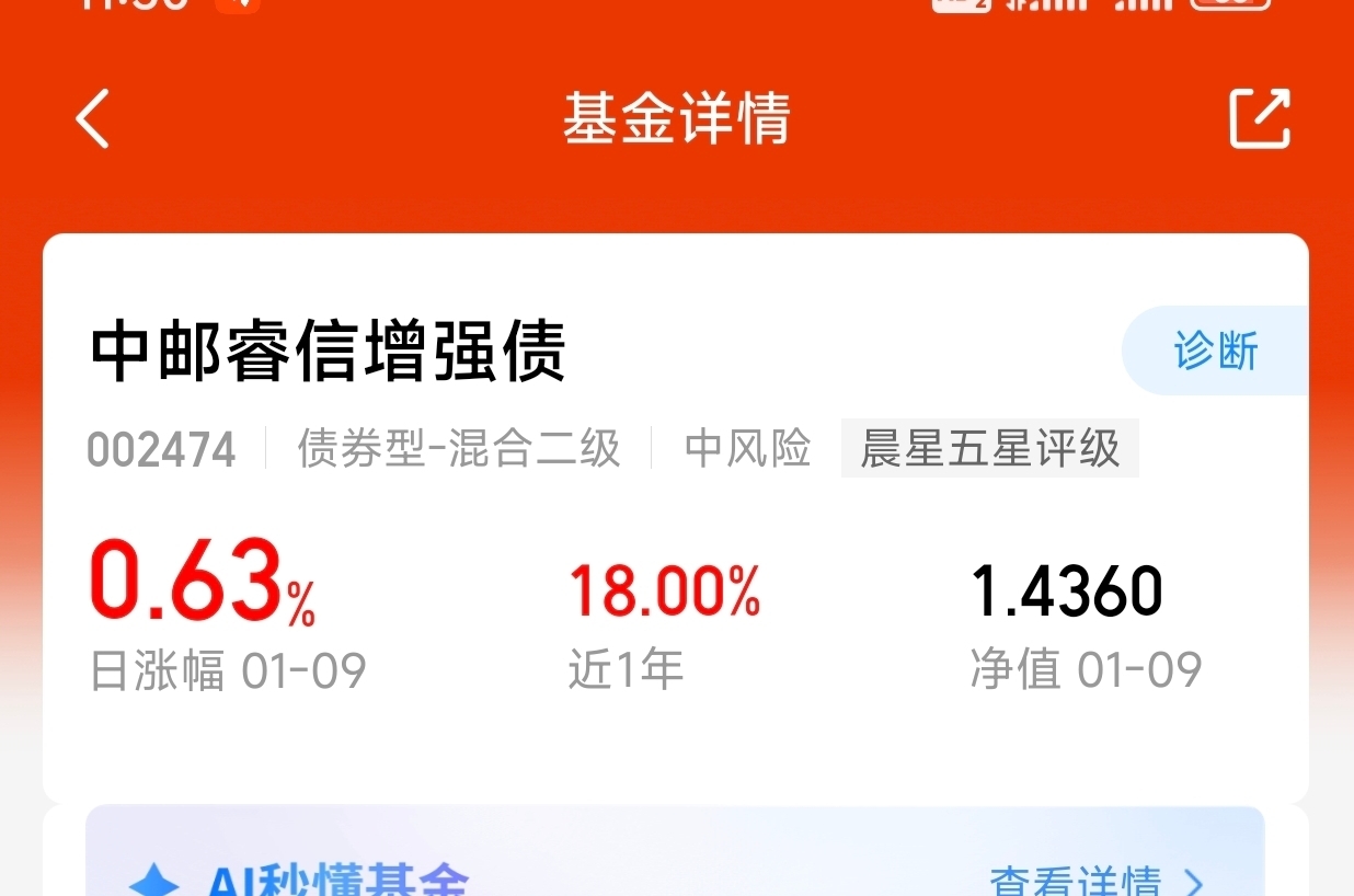 混债拿着还是很踏实了,$中邮睿信增强债$近一周294个蛋,周五收获63个蛋,这个